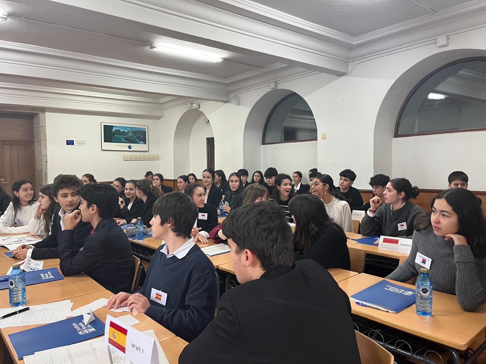 Ao longo da xornada, o noso alumnado demostrou un excelente dominio do inglés, destacando pola súa fluidez, seguridade e capacidade de comunicación nun contexto formal de carácter internacional. O traballo previo de investigación e preparación reflectiuse en intervencións de gran calidade, comprometidas cos grandes retos do mundo actual.